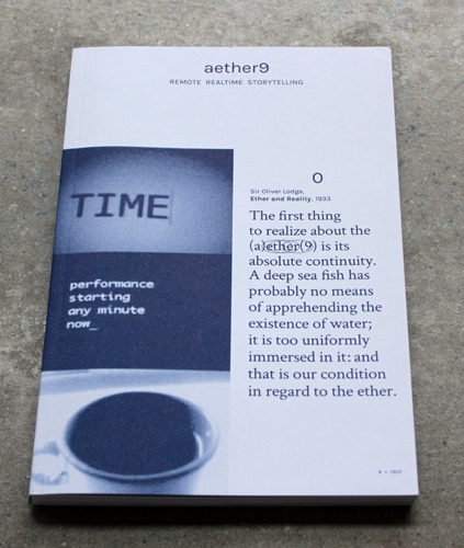 Aether9 is a collaborative adventure exploring the danger zones of networked audio-visual live performance. This catalogue of their work was generated from the collection of images, mailing-list and chat interactions that developed between 2007 - 2010. The process, behind-the-scenes discussions and perils of networked communication, technical pitfalls, and script development, can thus be followed from performance to performance.